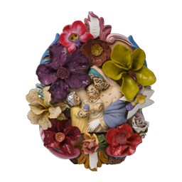 Ha un modo tutto suo di accostare colori, materiali, simboli, come se ogni cosa potesse raccontare una storia.