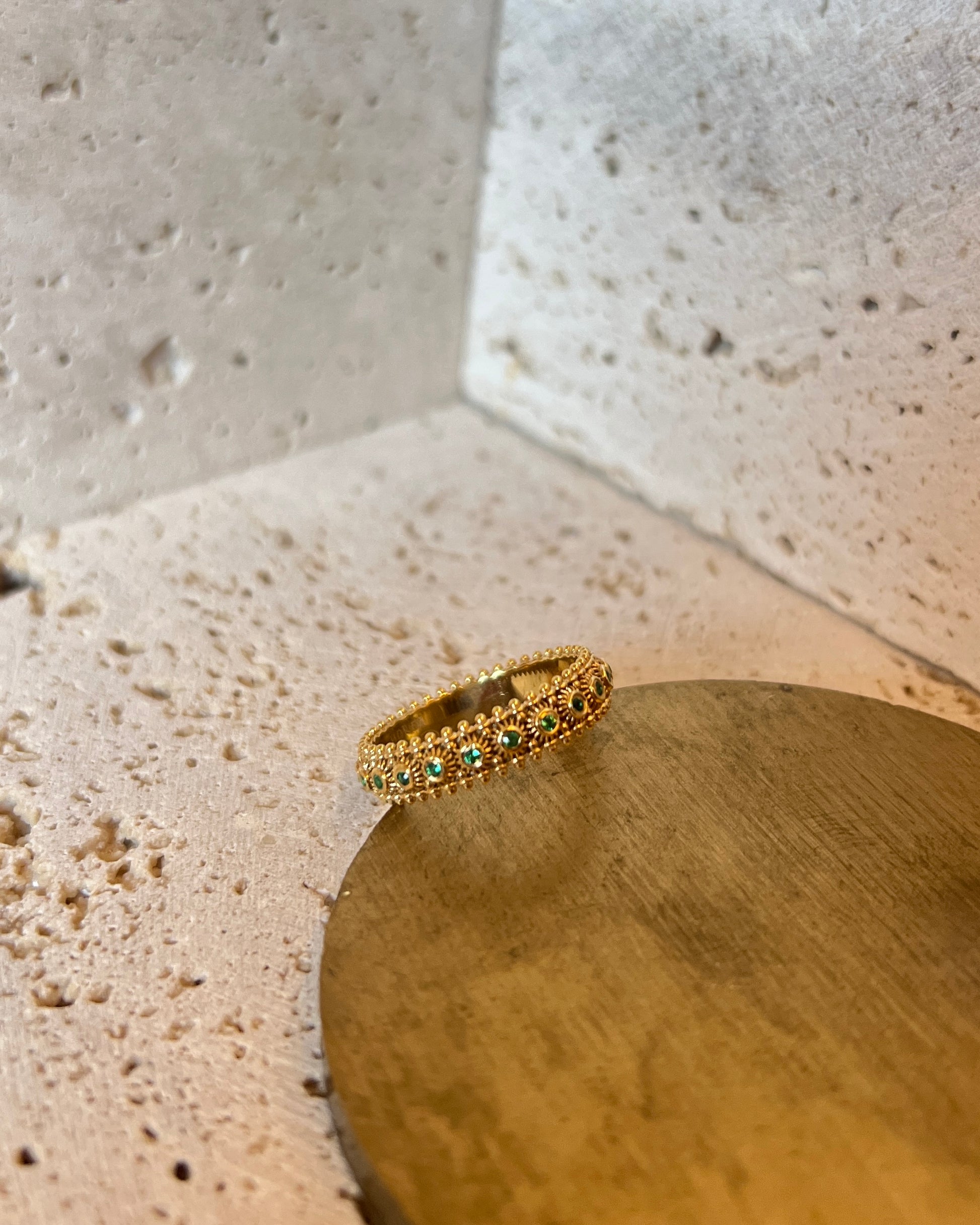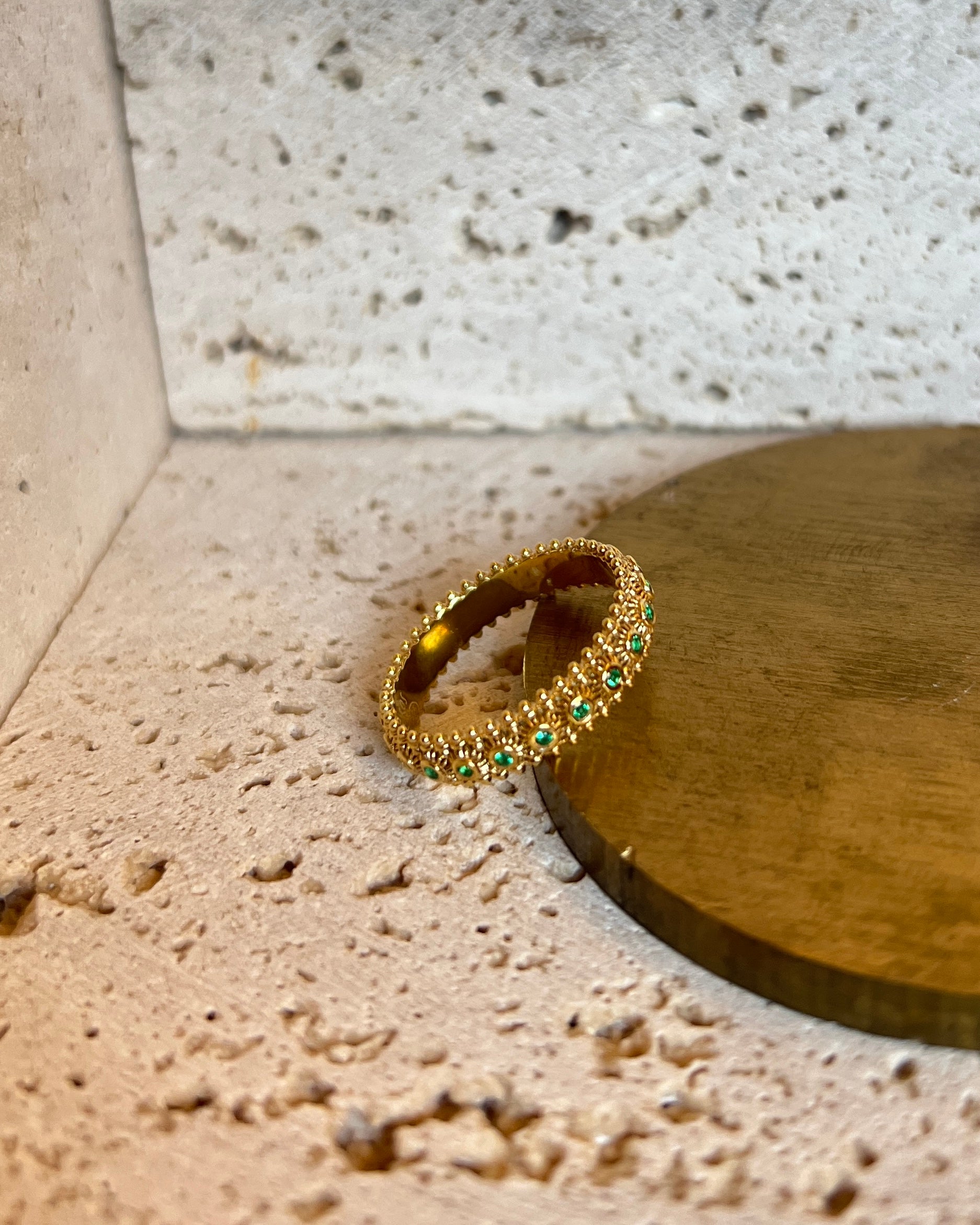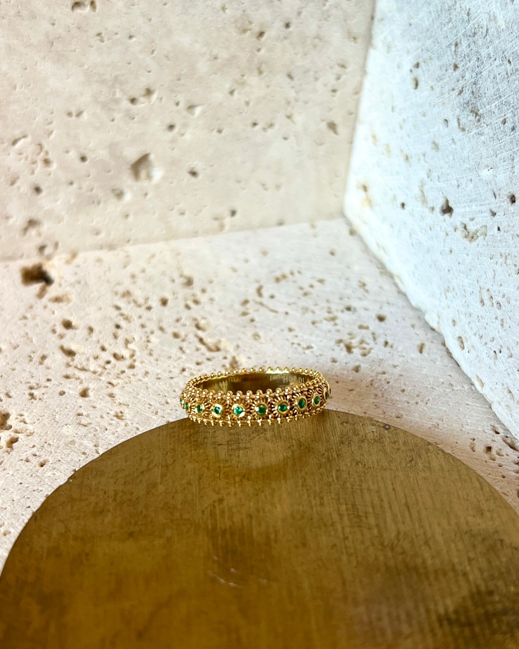 Fede Sarda a 1 fila Dorato con Smeraldi HOROS
