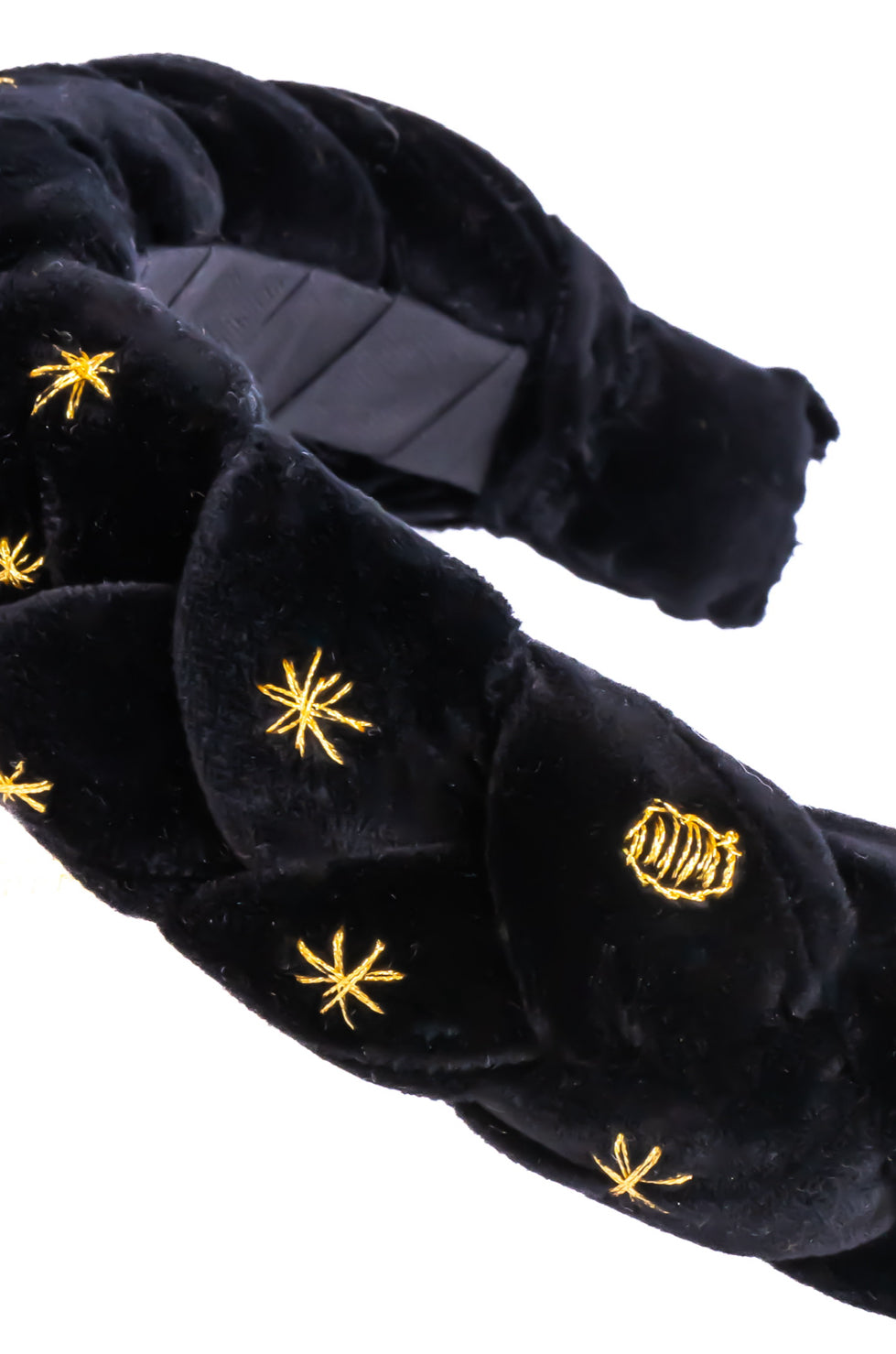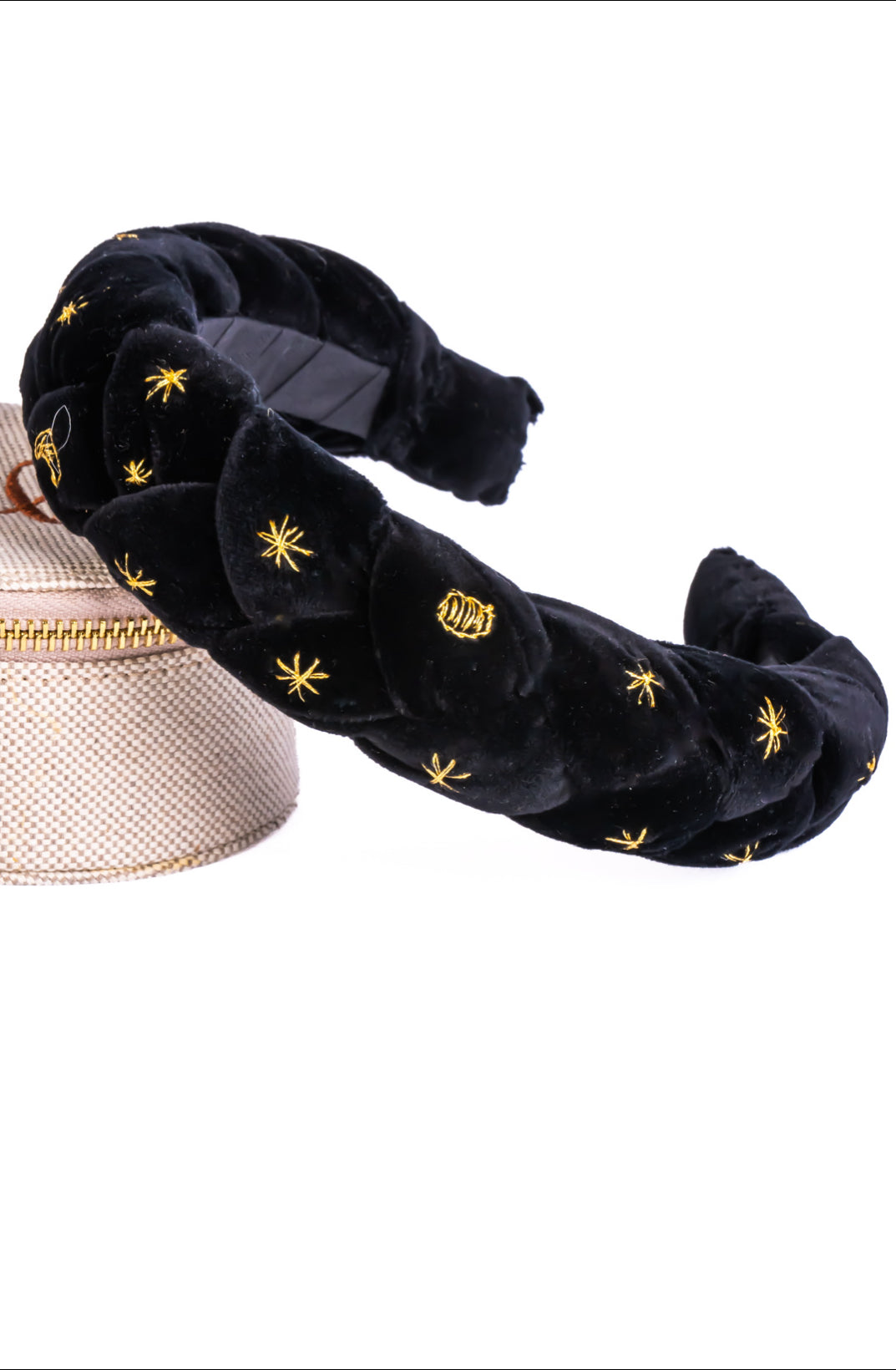 Cerchietto in velluto nero che cattura lo sguardo. La costellazione ricamata a mano in oro aggiunge un tocco di magia celeste, trasformando un accessorio quotidiano in un gioiello per i capelli. Grande e generoso nella forma, è il pezzo che completa qualsiasi look con eleganza discreta e personalità luminosa. Perfetto per chi sa che i dettagli brillanti fanno la differenza.