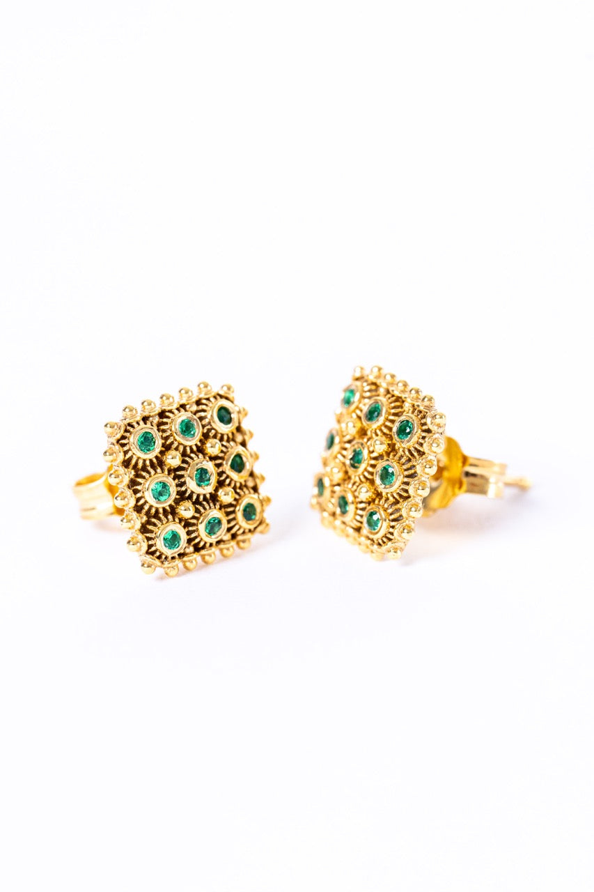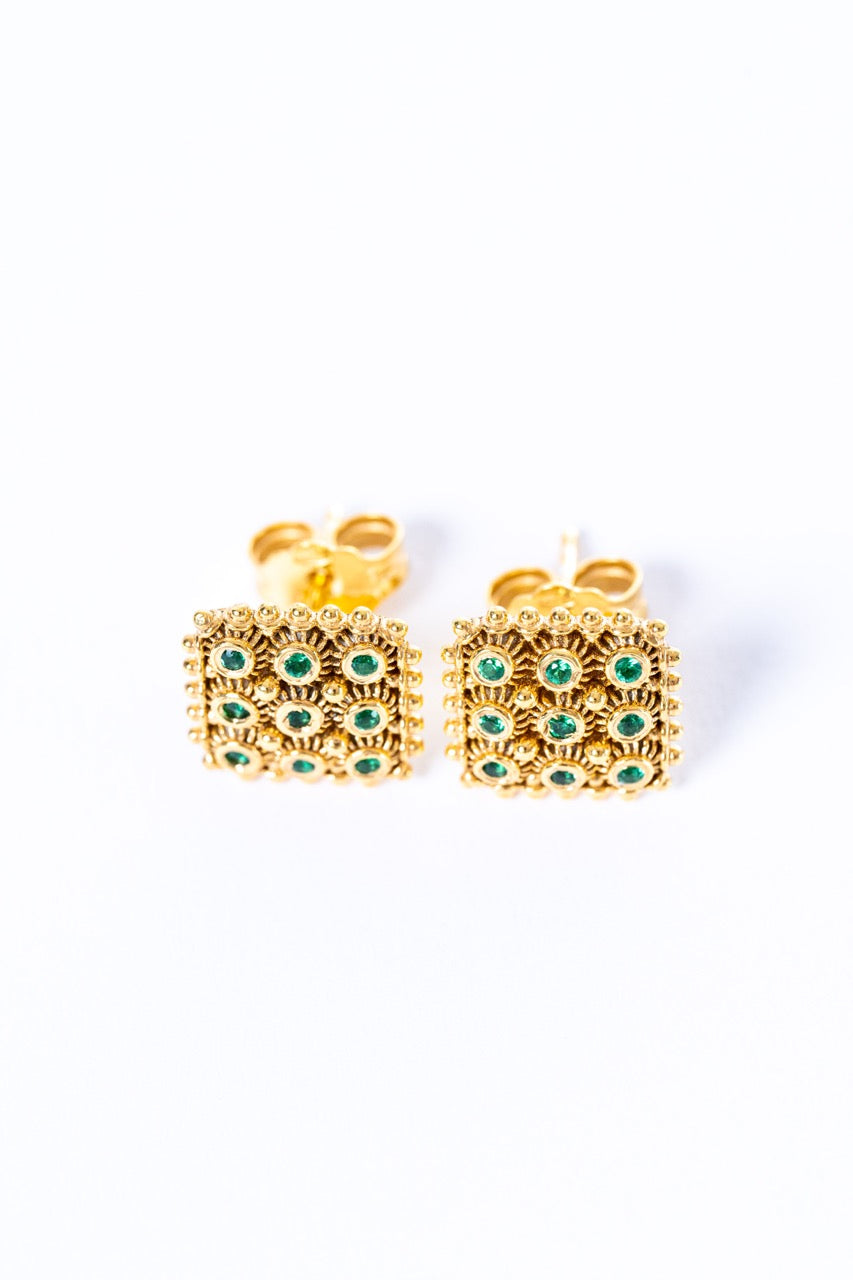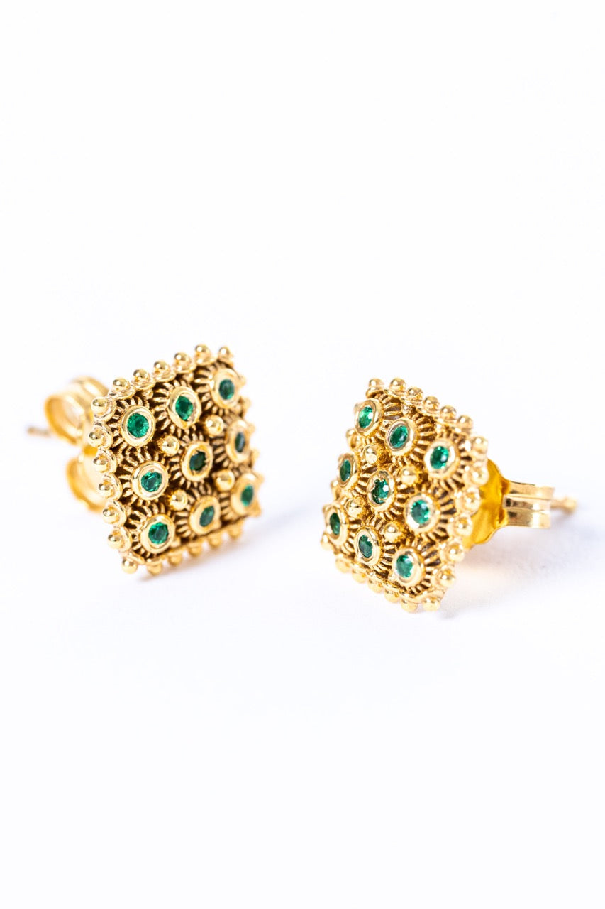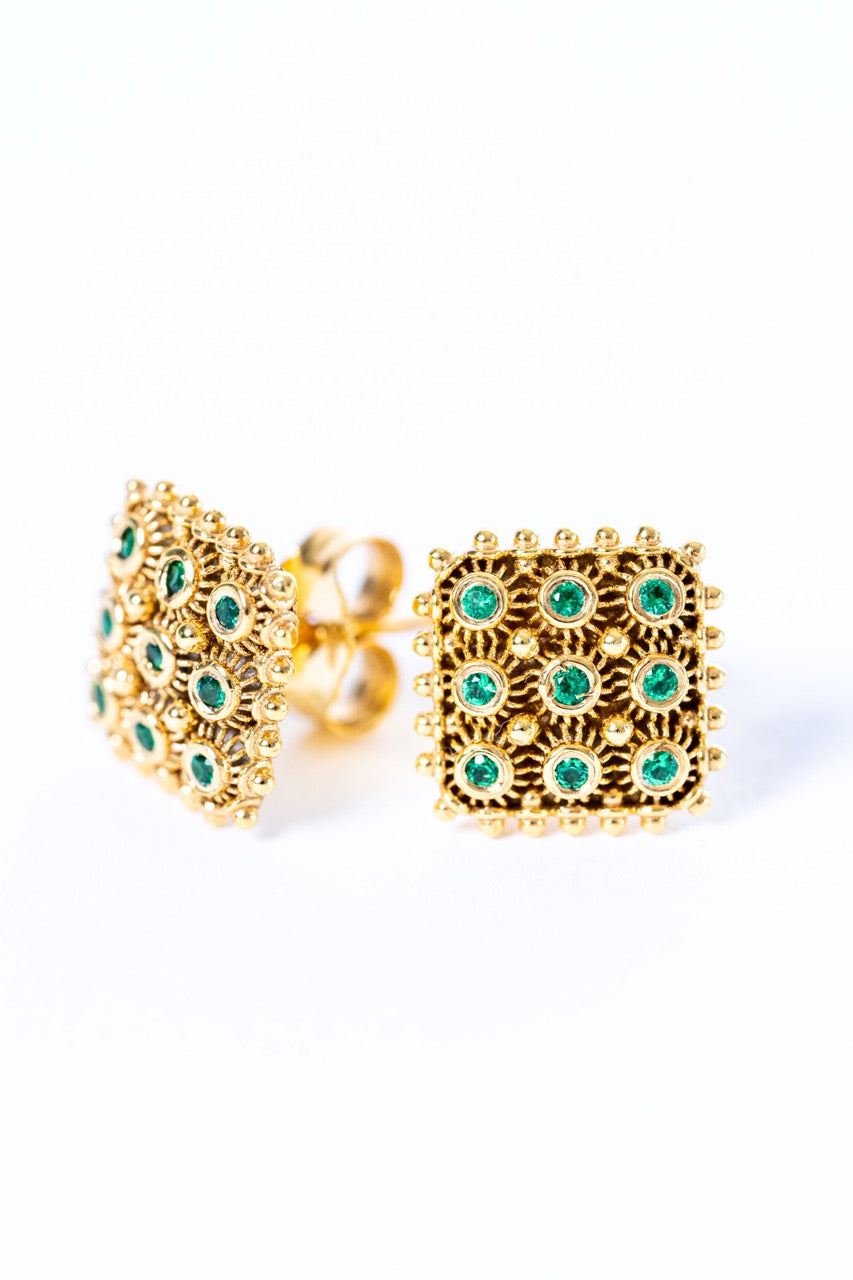 Orecchini Nido D’ape Dorato con Smeraldi HOROS