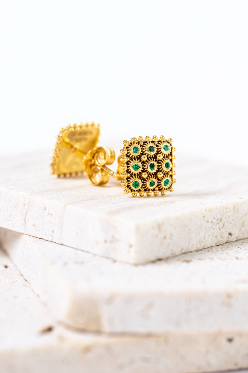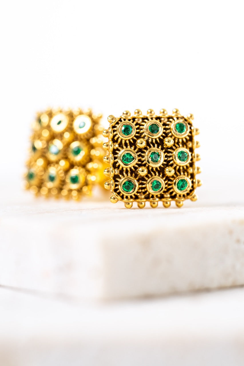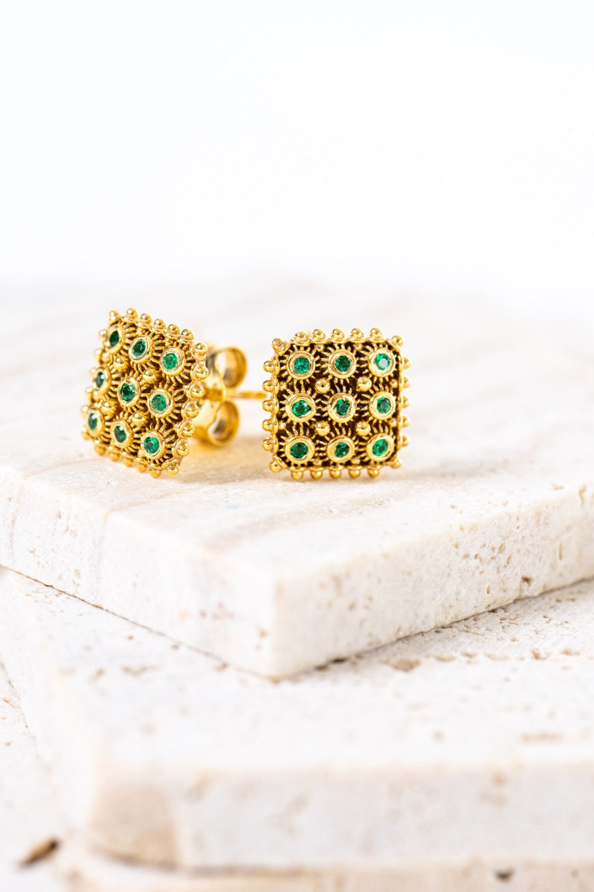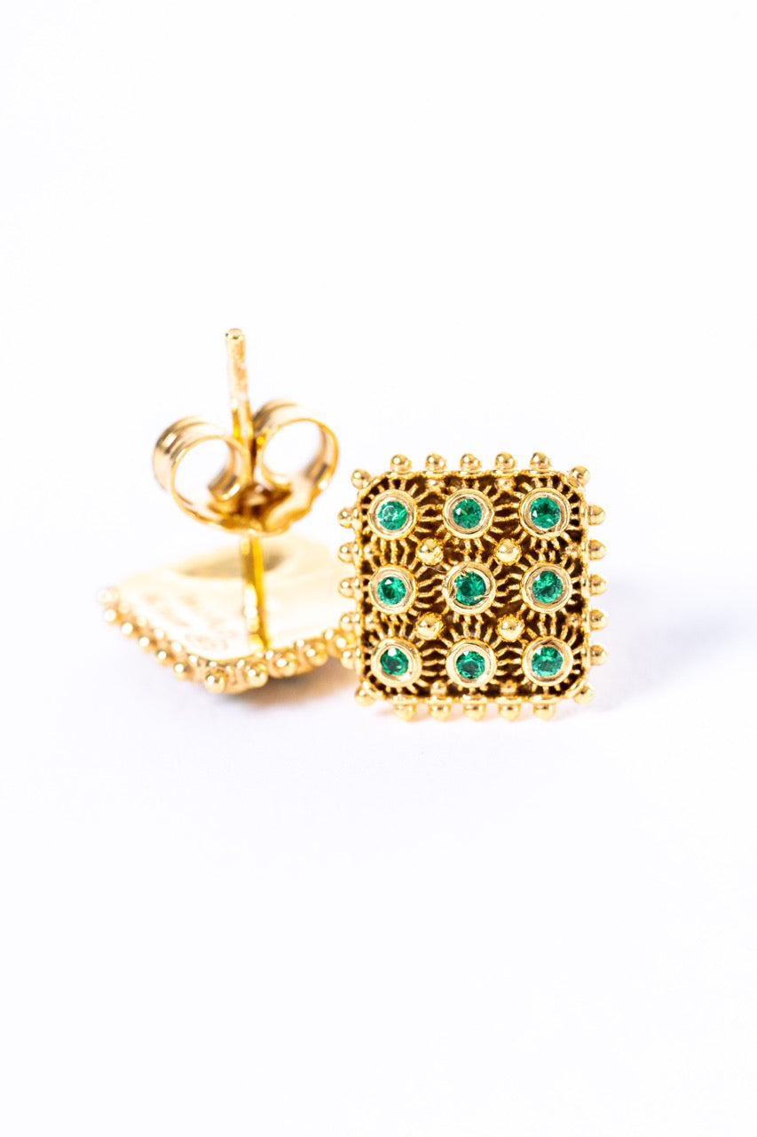 Orecchini Nido D’ape Dorato con Smeraldi HOROS