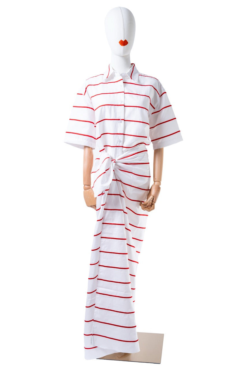 Il Pareo striped di Palomiino è il compagno ideale per le tue giornate al mare. Grande e avvolgente, bianco con righe rosse, porta un tocco di allegria e stile sulle spiagge estive. Leggero e fresco, ti farà sentire subito pronta per una passeggiata o un tuffo, con quel pizzico di brio che non guasta mai sotto il sole.