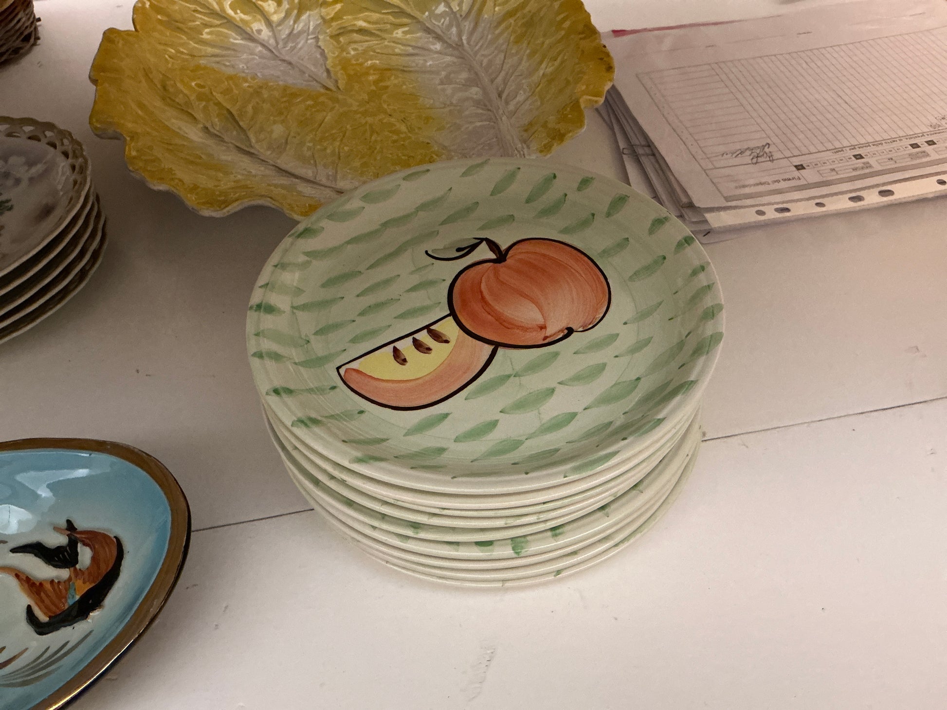 Set piatti x9 verde e bianco frutta Teresa cercava